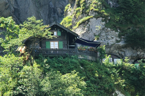 Horská bouda Höllentaleingangshütte na začátku soutěsky v létě počítá až se 70000 návštěvníky