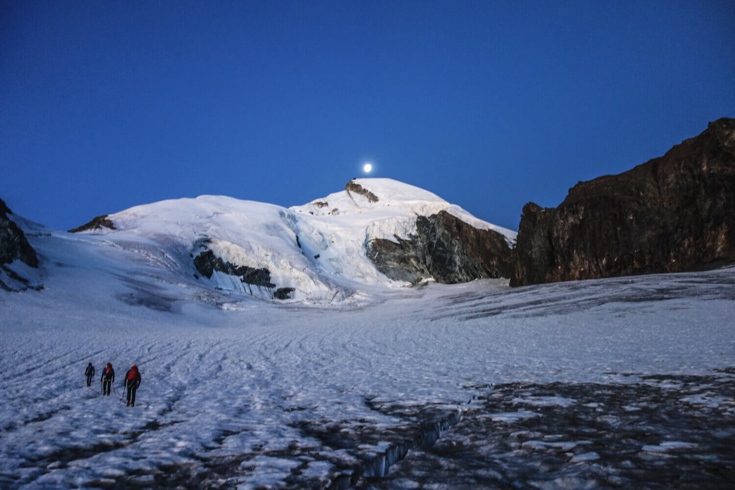Úplněk na Hohlaubgrat, Allalinhorn, Wallis, Alpy, Švýcarsko.