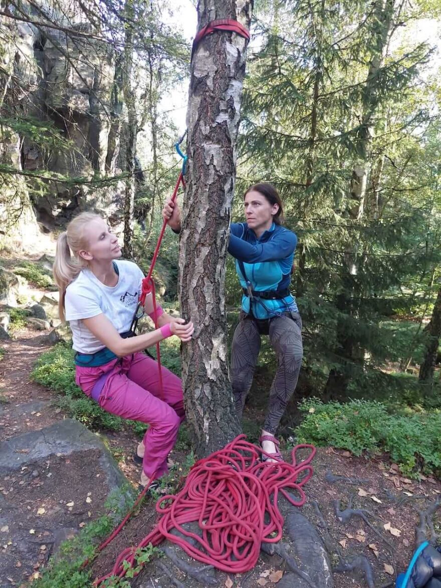 Holky se seznamovaly s materiálem, učily se jistit seshora nebo si po vlastním vytáhnout první cesty.