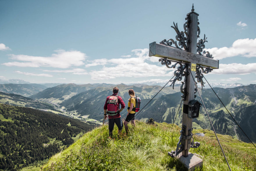 Okružní turistická trasa Home of Lässig Hike prověří fyzičku a potěší všechny milovníky horských panoramat. Saalbach Hinterglemm, Kitzbühelské Alpy, Rakousko.