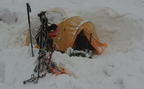 Balení stanu před výstupem do dvojky (Chopicalqui)
