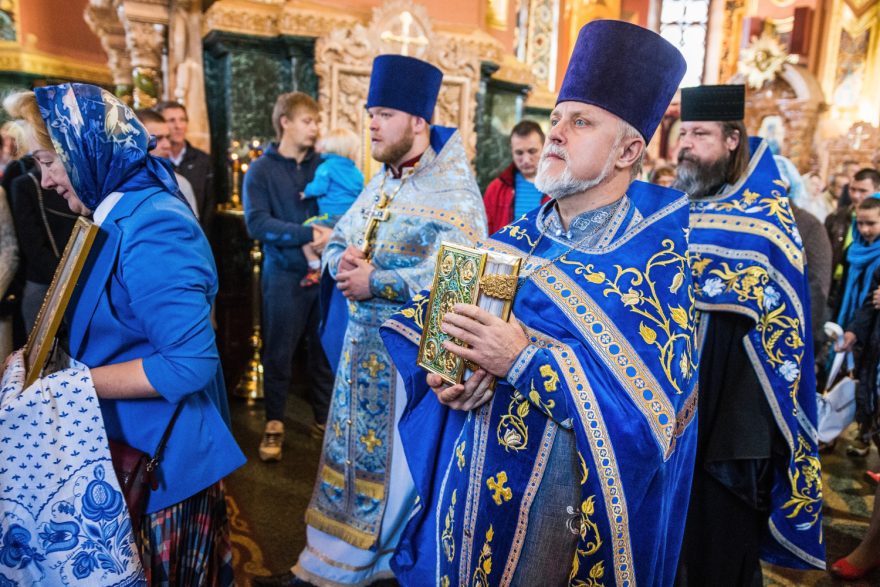 Nedělní pravoslavná mše v Kadaňské katedrále v Irkutsku
