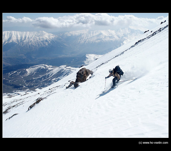 Damavánd v plné kráse ze svahů pod čtyřtisícovým hřebenem táhnoucím se od Poluru.