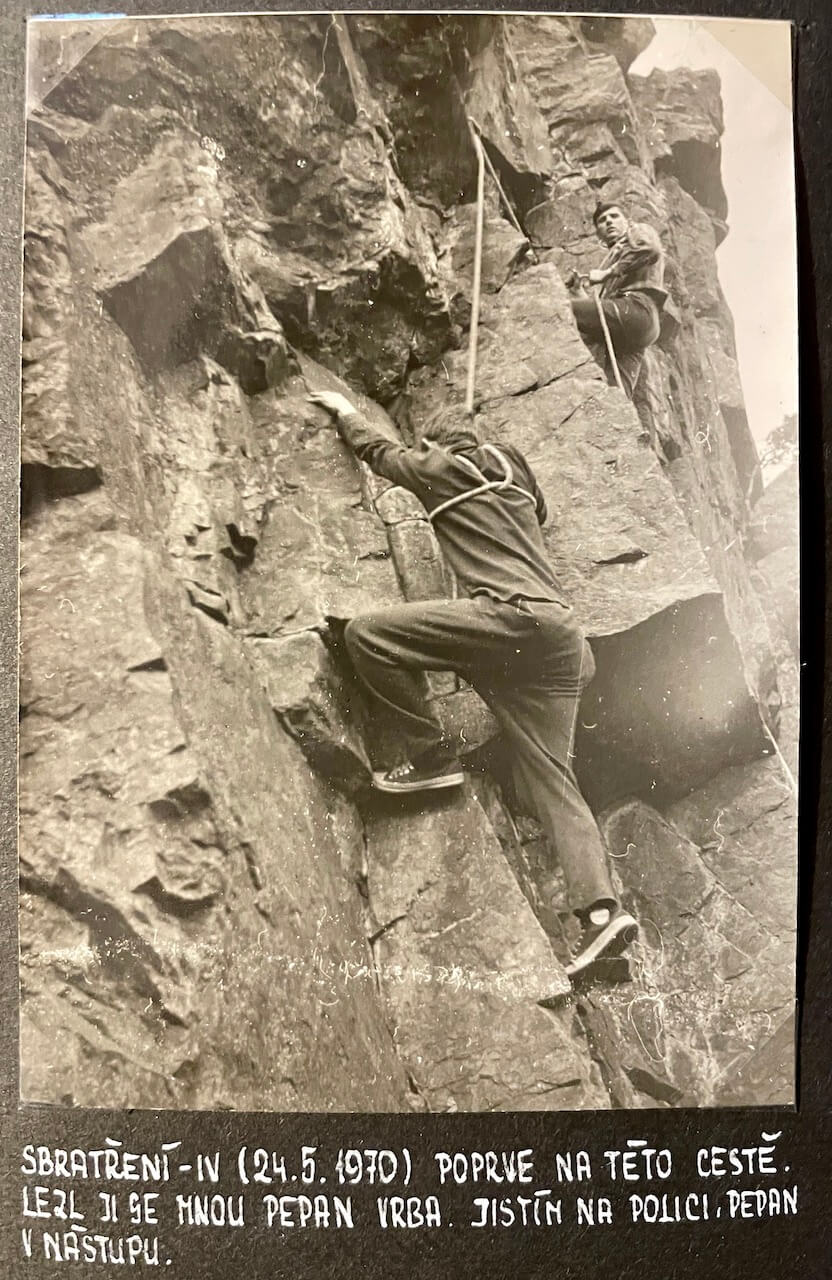 Jindřich Sochor si skálu nejdříve vyfotí a podle fotky maluje TOPO cesty
