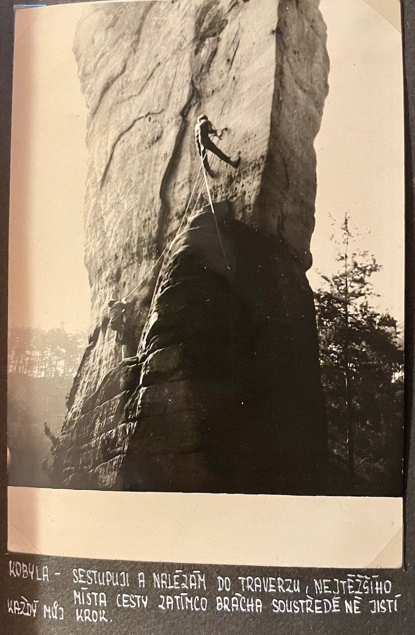 Jindřich Sochor si skálu nejdříve vyfotí a podle fotky maluje TOPO cesty