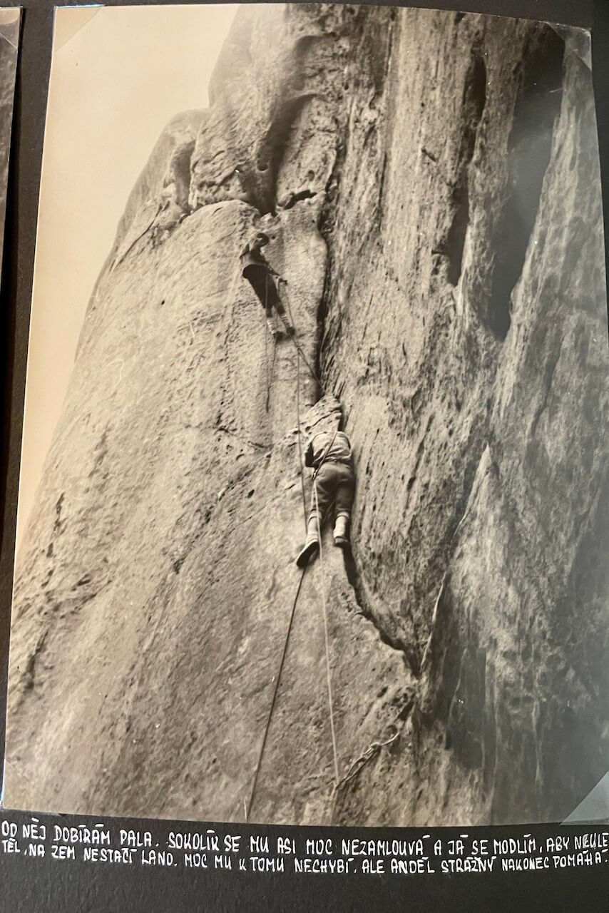 Jindřich Sochor si skálu nejdříve vyfotí a podle fotky maluje TOPO cesty