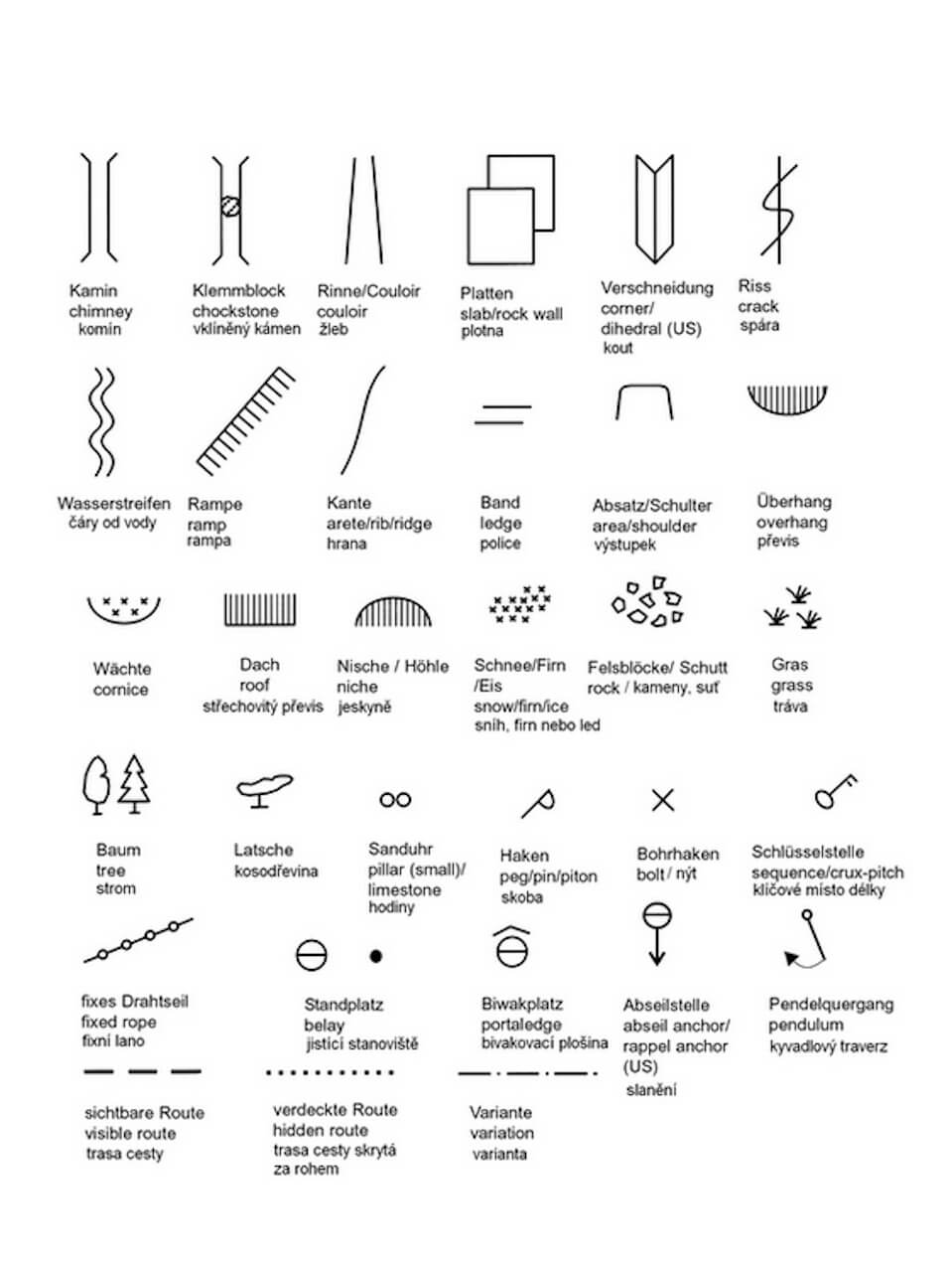 soubor univerzálních piktogramů, které znázorňují nejčastější útvary, které v cestě můžete potkat