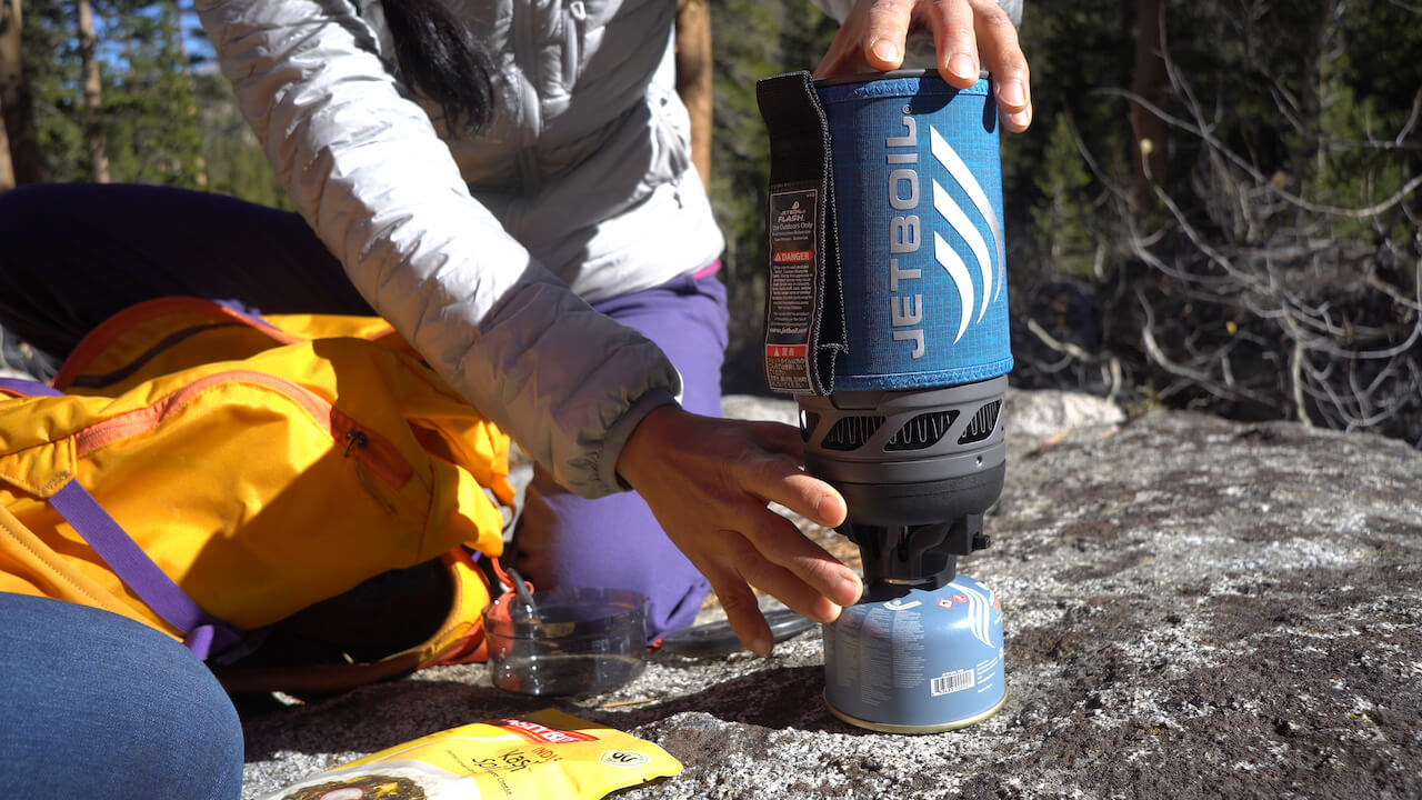Vařič Jetboil Flash vyniká kompaktností a rychlostí ohřevu vody.