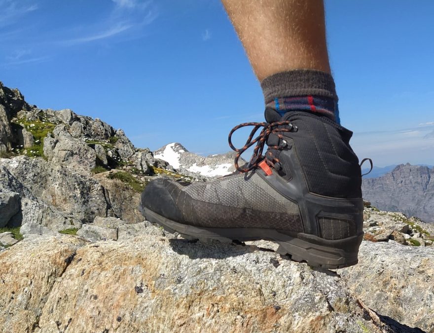 Pevné stažení kotníku se hodí pro pohyb v náročnějším terénu s těžším batohem. Lowa Ranger III GTX.