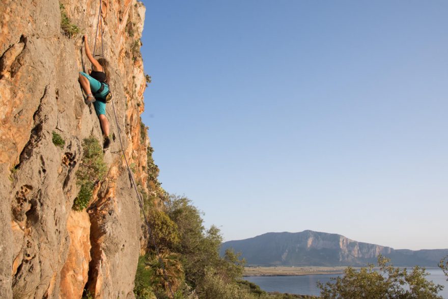 Čisté more a skály, které jsou domovem krabů poustevníčků, sasanek i mořských ježků, Sicílie