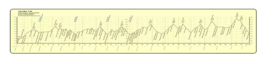 mapa John Muir Trail, Sierra Nevada, Kalifornie, USA
