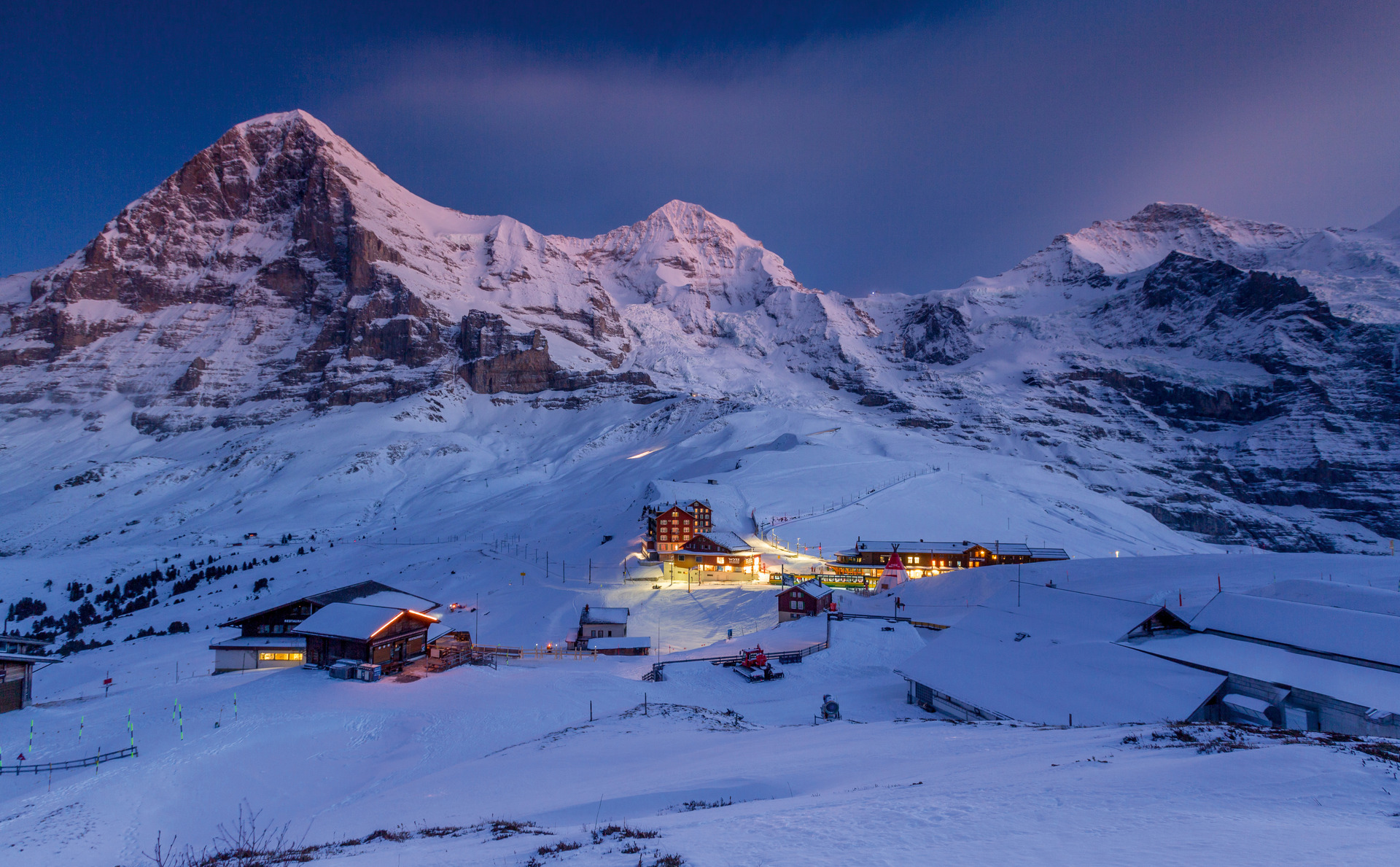 Večer v Kleine Scheidegg s výhledy na Eiger, Moench a Jungfrau nad Lauterbrunnen, Švýcarsko. Foto: Jan Geerk