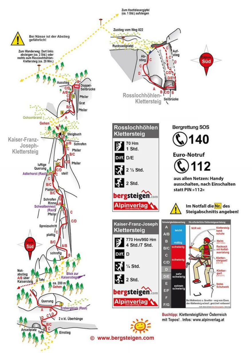 Překrásné lezení v příjemné skále po svazích hory Rossloch nabízí ferrata Kaiser Franc Josef Klettersteig obtížnosti D/E