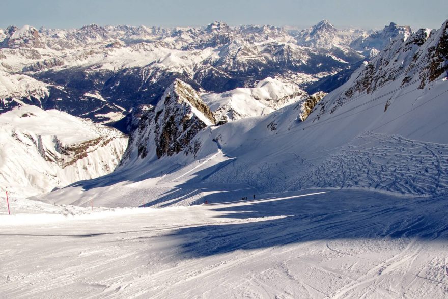 Lyžařské středisko Marmolada, Dolomity, Itálie.