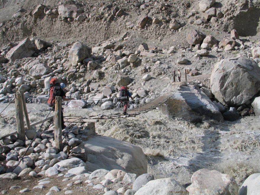 Cestička podél ledovce Hispar v místě nazvaném Dachigan