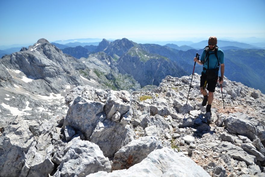 Pohled na Kalški hřeben. Výstup na Grintovec, Kamnicko-Savinjské Alpy, Slovinsko.