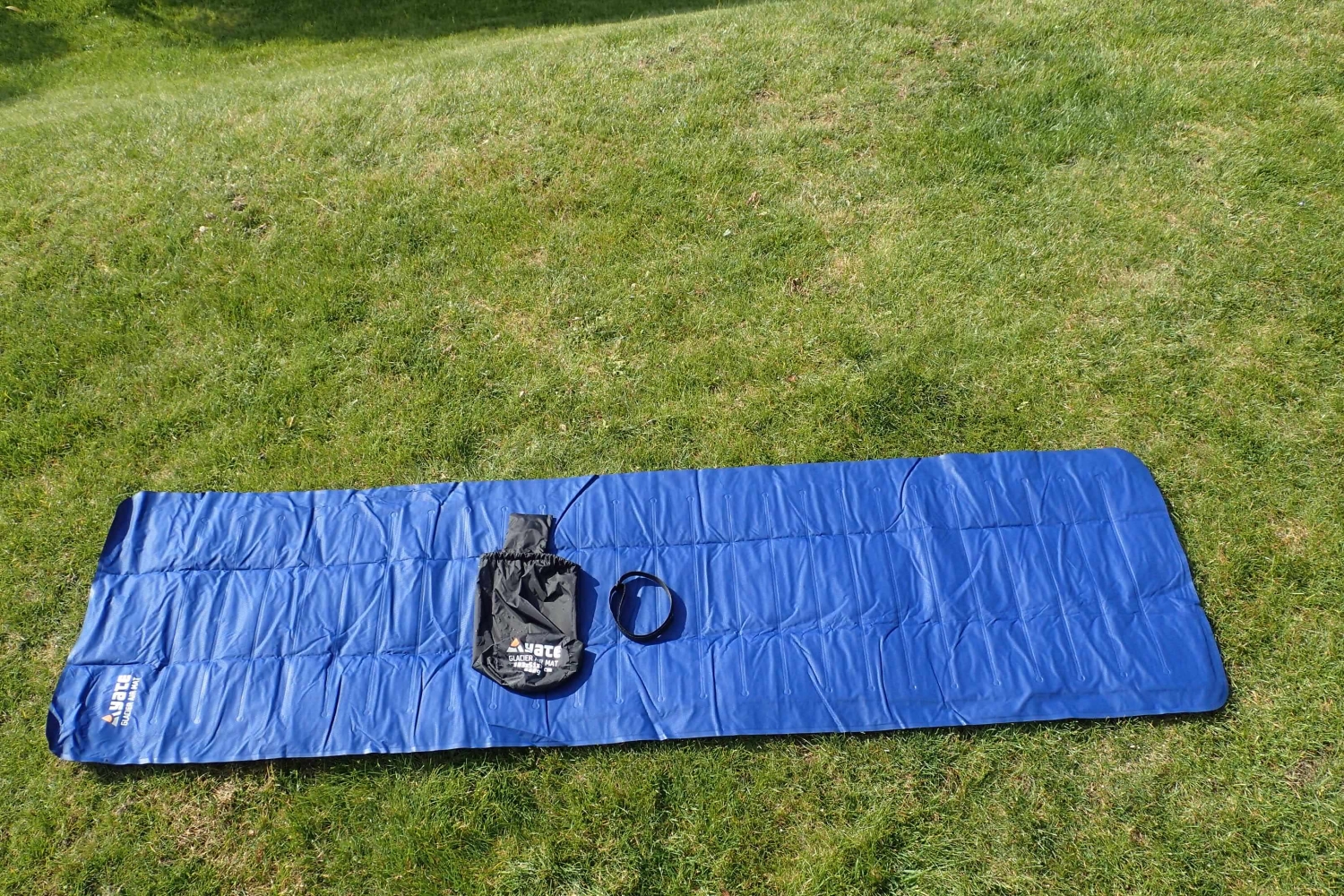 Rozložená a nenafouknutá karimatka YATE Glacier Air Mat