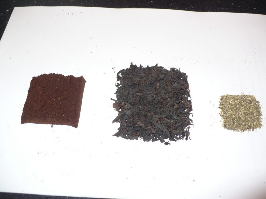 Čaj je účinnější stimulant než káva. Na obrázku je pro srovnání 7g dávka kávy, 7g dávka čaje a jako poslední běžná 2g dávka čaje. Je vidět, že 7g čaje rozhodně není dávka pro jeden šálek