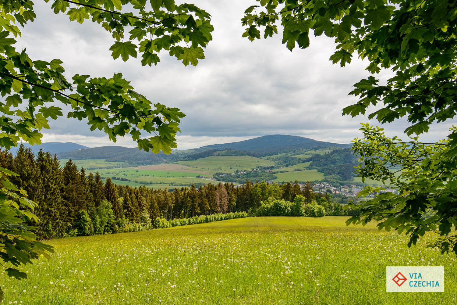 Pohled na Jeřáb, jedinou tisícovku a nejvyšší horu Hanušovické vrchoviny