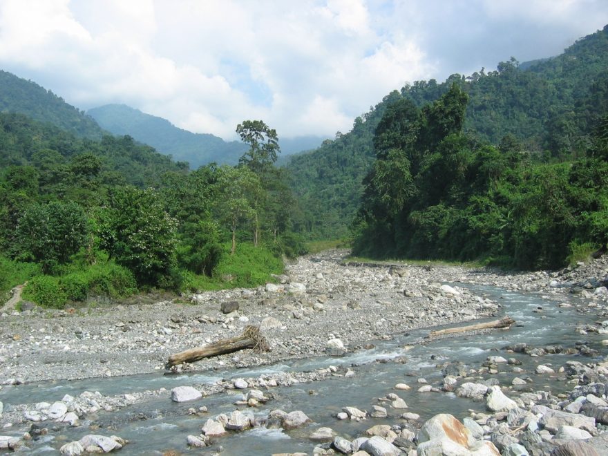Bhútánská žena v kroji Kira před goembou v Pashace