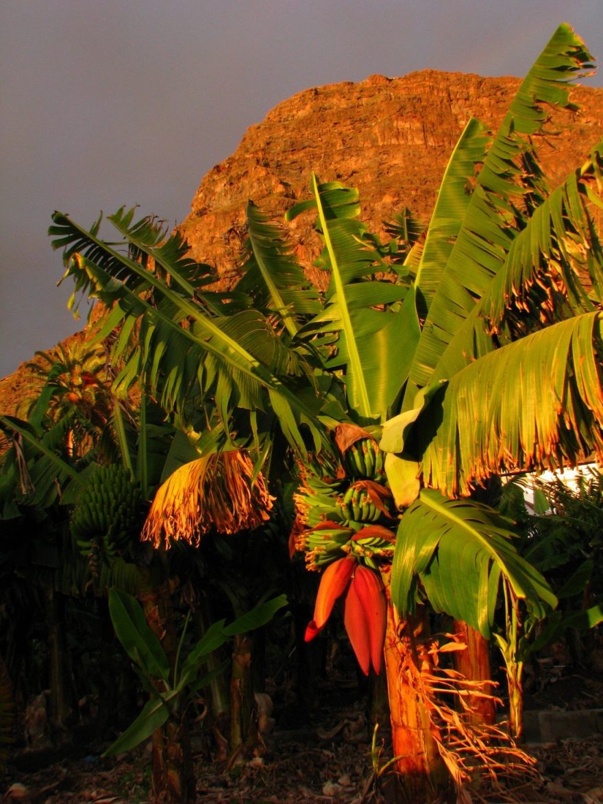 Kanárské banány v údolí Valle Gran Rey, Gomera