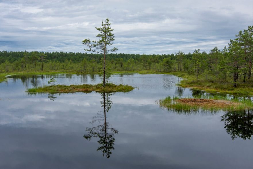 Ve vnitrozemí najdeme unikátní bažinní systémy, protkané řadou stezek a chodníků. NP Lahemaa, Estonsko