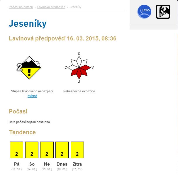 Lavinová předpověď dle české Horské služby
