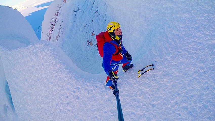 Pucher při svém sólu cestou Supercouloir na Mont Blanc de Tacul