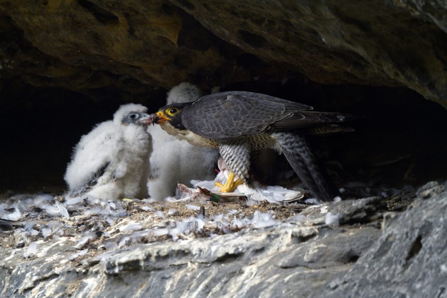 Ve skalách hnízdí chráněné druhy ptáků, jako je výr velký, sokol stěhovavý a čáp černý.