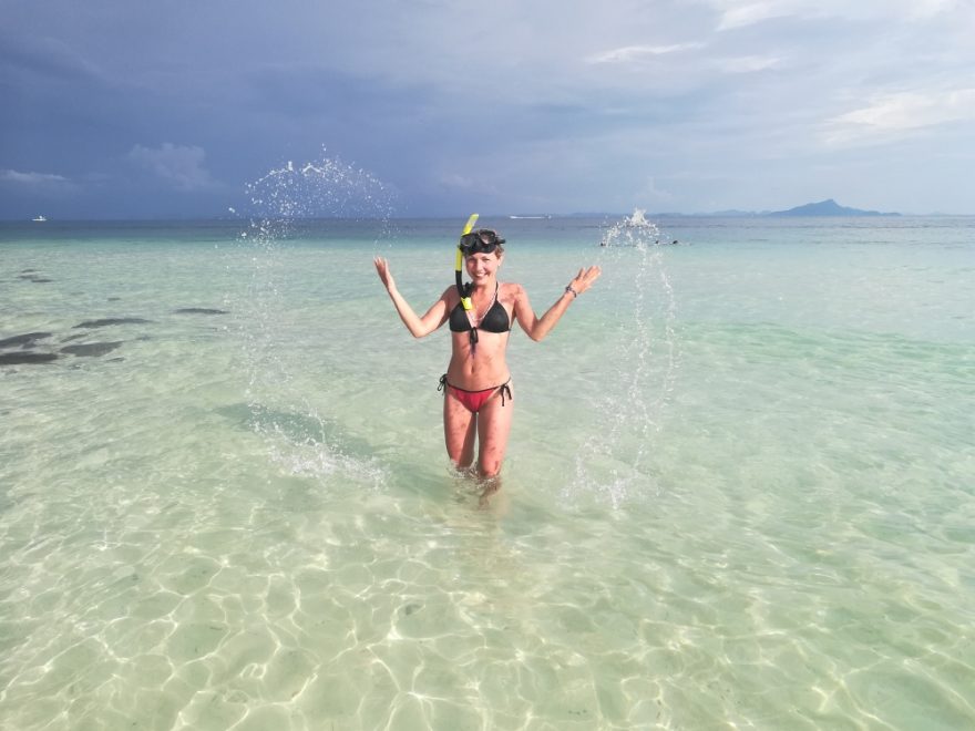 ostrůvek Tuba Island. Je to místo jako z cestovního katalogu – bílý písek, průzračné moře, palmy a opice.