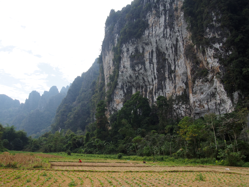 Lezecká oblast Pha Tang u města Vang Vieng nabízí dobře jištěné cesty v rozptylu od 6a do 8a.