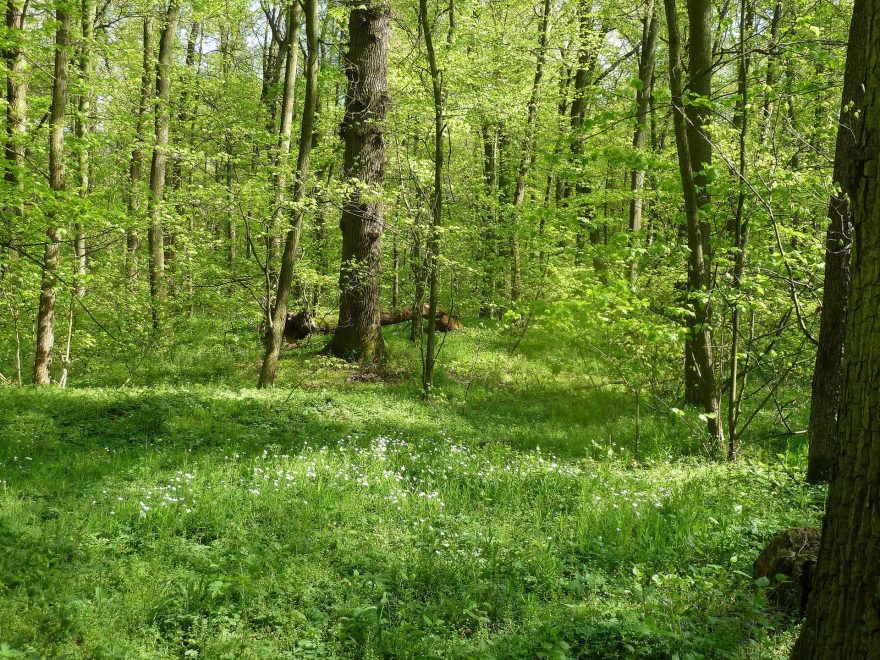 V terénu lesa jsou patrné rýhy po vyschlých mrtvých ramenech řek