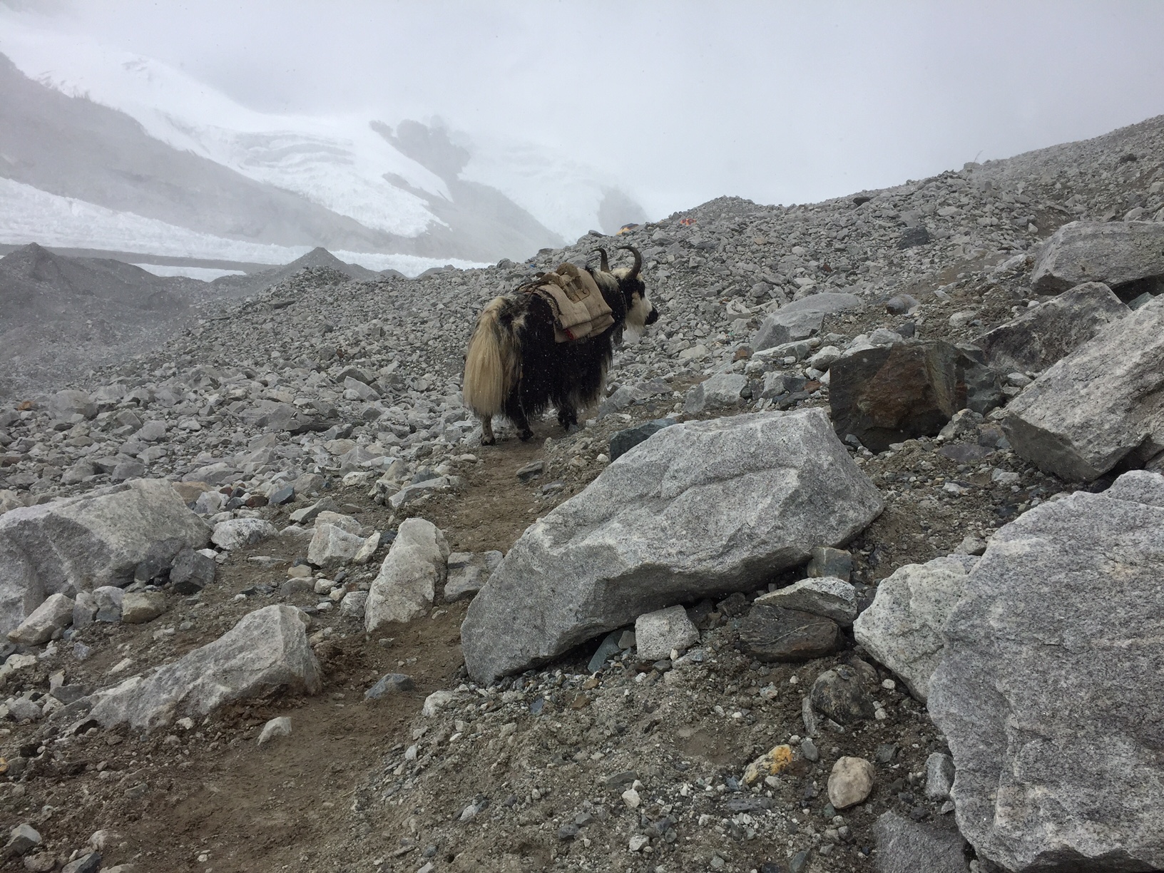 Cho Oyu leží v Himaláji na hranicích Číny a Nepálu. Jaci slouží místním jako silní pomocníci při přepravě nákladu.