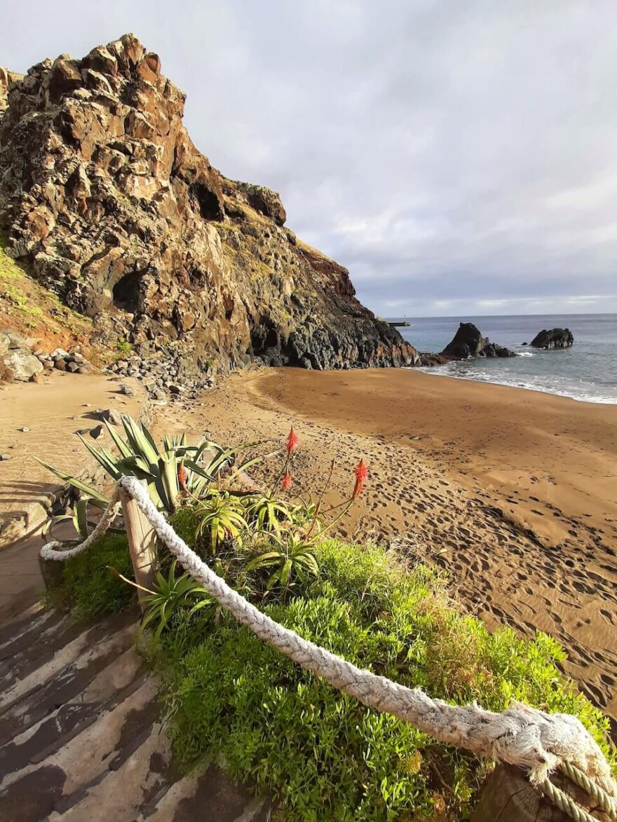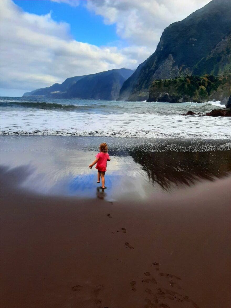 Vulkanická pláž Prainha u Canicalu na východě ostrova Madeira