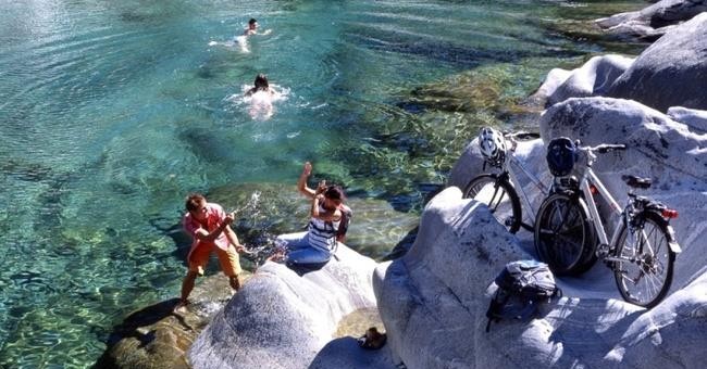 Koupání na balvanech, Řeka Maggia, Švýcarsko