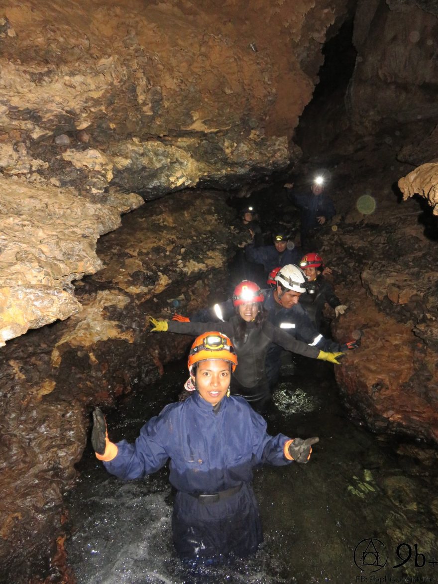 Místy sahá ledová voda potoka až po hrudník, jeskyně Huagapo, Peru.