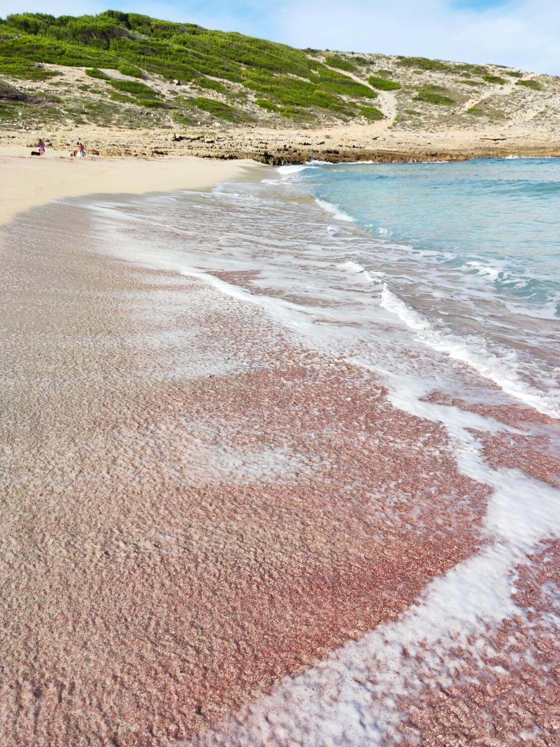 Pláž s růžovým pískem Cala Torta, Mallorca