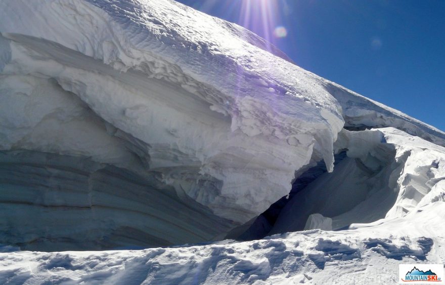 Pohled zpátky, vpravo začátek stěny Khmaura