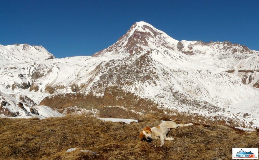 První mrazivé ráno naší výpravy Kazbeku na dohled, což je tady vlastně pořád