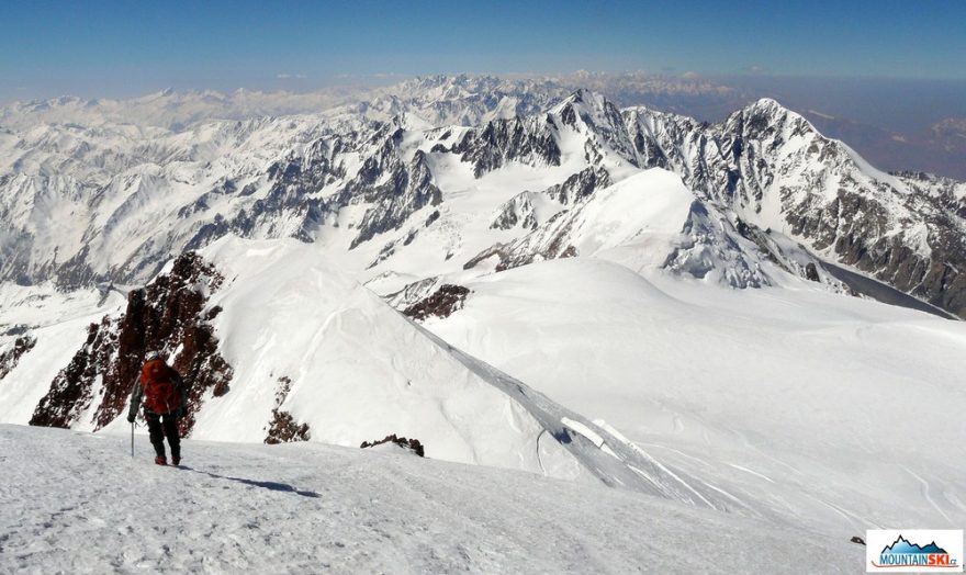 Tady se už při sestupu z Kazbeku šlo celkem dobře, šlo se po vyšlapaných stopách, ale i tak pomalu, neboť se nevyplácí riskovat