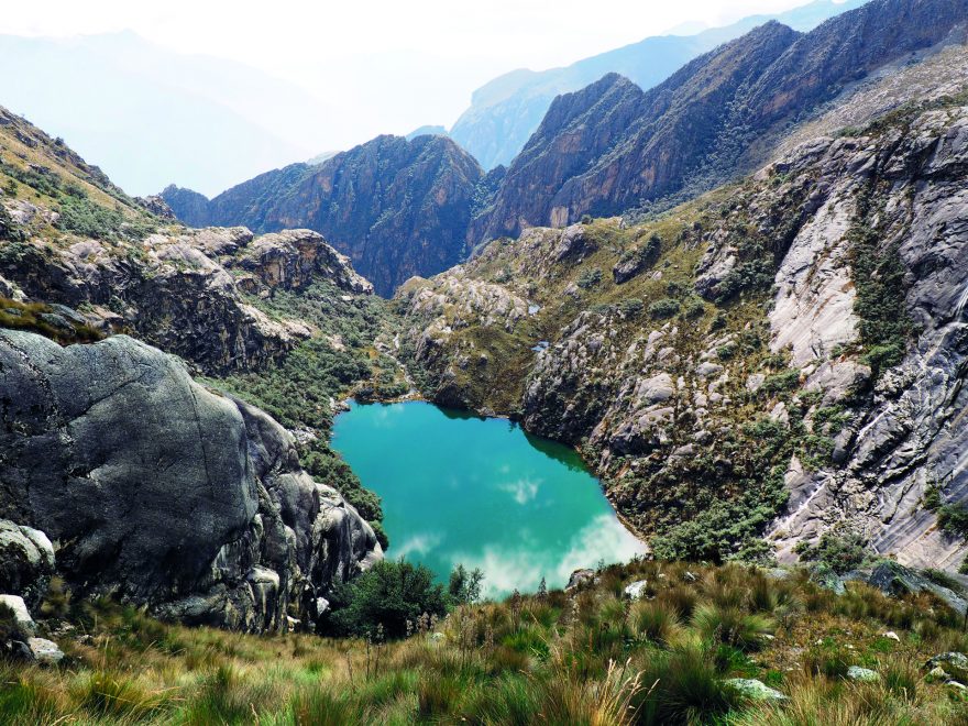 Modré horské jezero, Cordillera Blanca, Alpamayo trek, Peru.