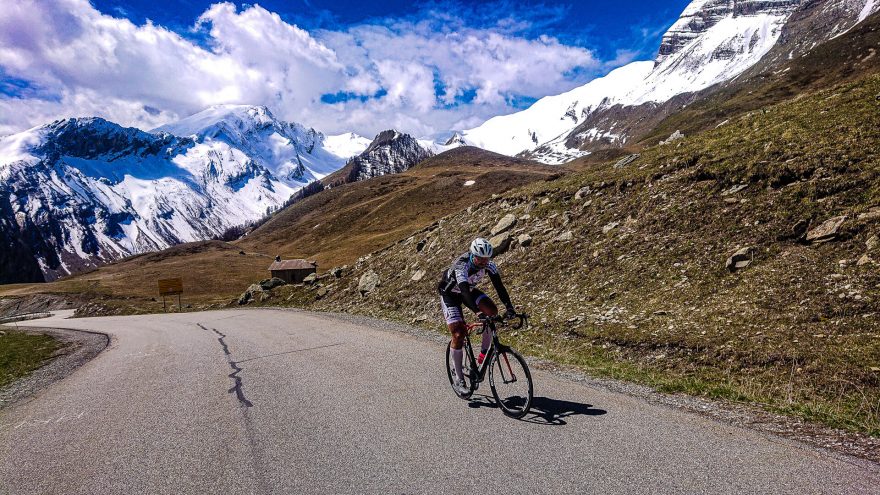 Poslední metry výjezdu nad ránem na Passo di Sella. Korona Himálaje 2021.