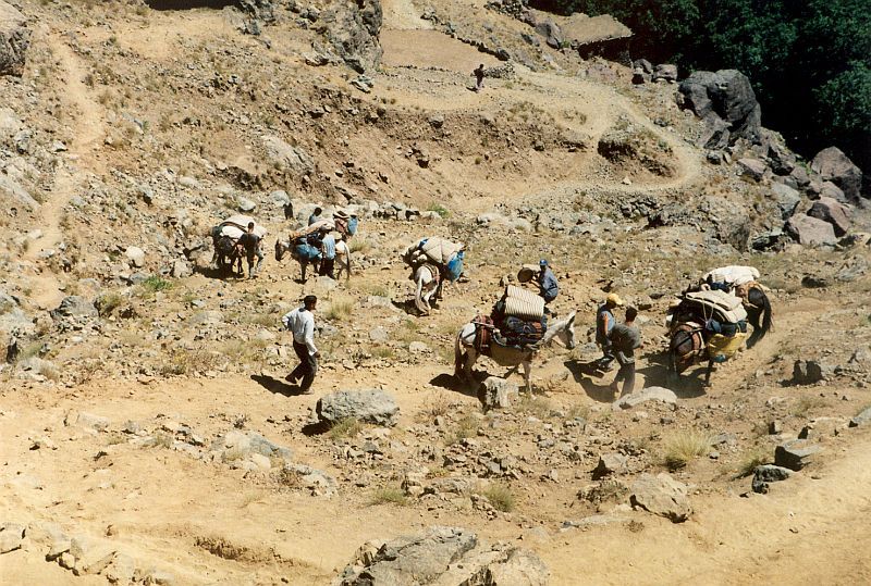 Pohled na cestu během výstupu na Džabal Tubkal