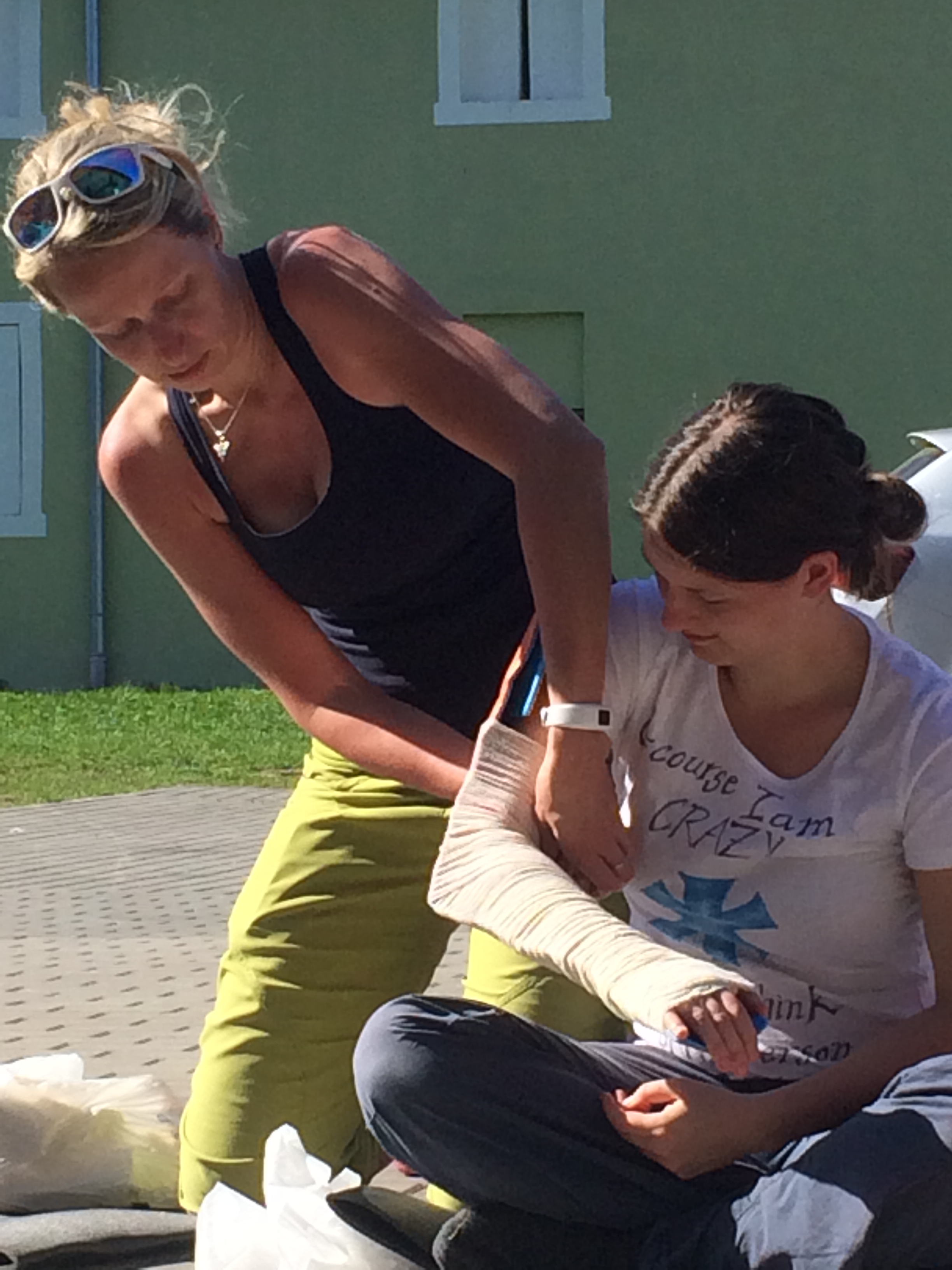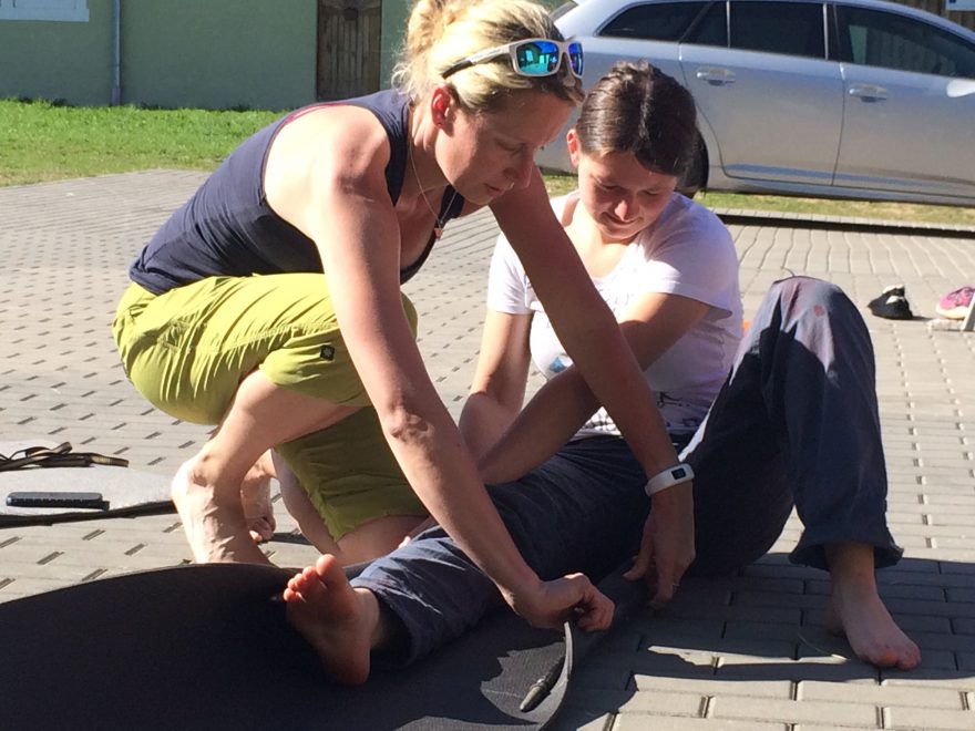 Dlahu vážeme tak, aby bylo možné stále kontrolovat prokrvení prstů.