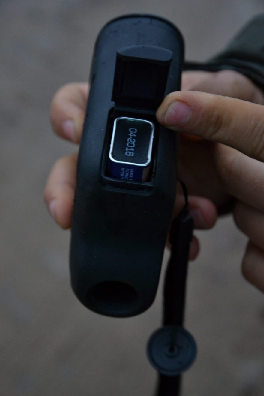 Kryt s baterií 9 V se nachází na spodní straně dálkoměru National Geographic 4×21 Rangefinder.