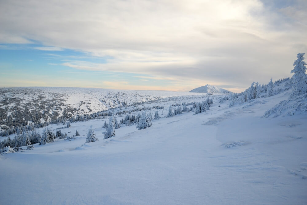 Výhled na Sněžku od Kozích hřbetů, Krkonoše