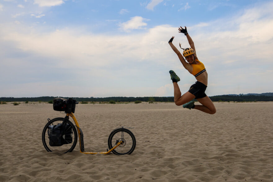 Pro koloběžku jsou obtížnější úseky kolem Błędowské pouště, kde je písek