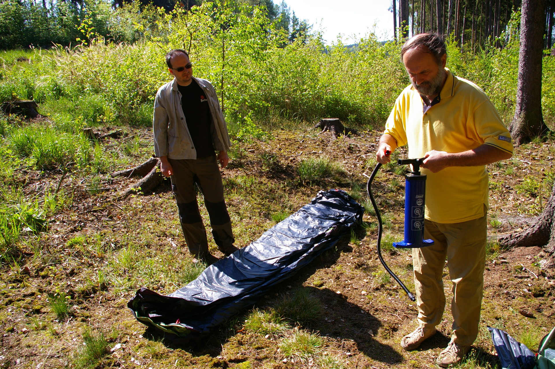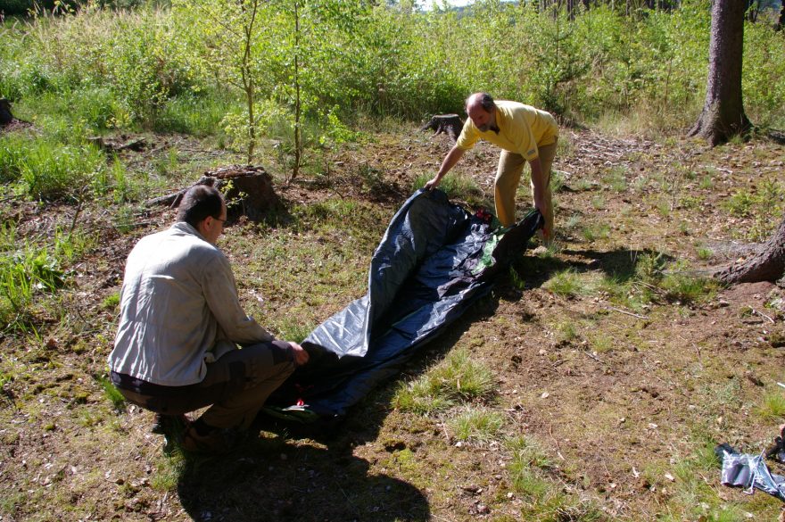 Příprava stavby stanu.