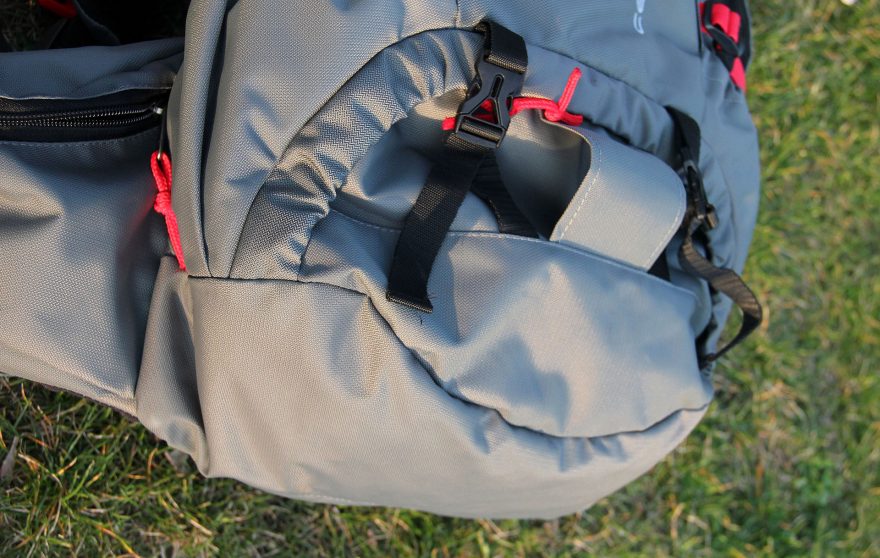 Kompresní popruhy, uchycení na hůlky nebo cepíny a systém pro uchycení nákladu s odolným vypodložením