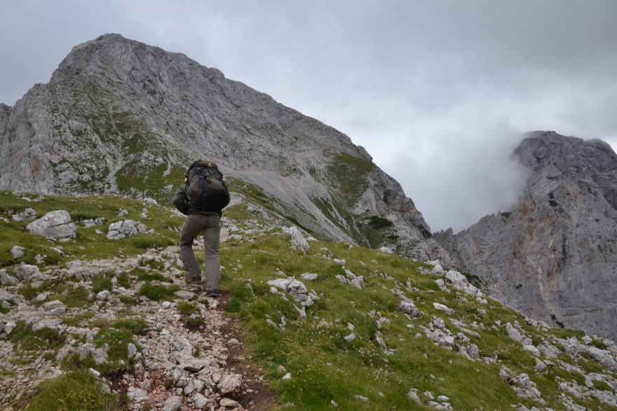 Nástup do Kamnického sedle z doliny Kamnické Bistrice zabere tak 4 hodiny. Kamnicko-Savinjské Alpy, Slovinsko.